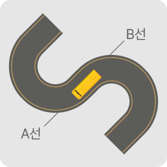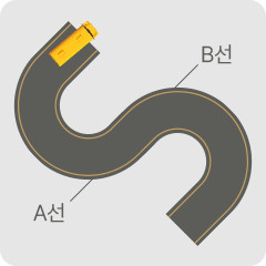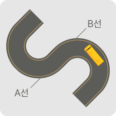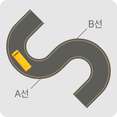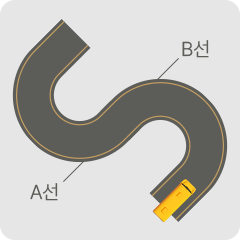 곡선코스는 가장 쉽고 시간이 적게 걸리지만 항상 백미러를 주시하면서 바퀴가 검지선에 걸리지 않도록 특히나 주의해야 한다.